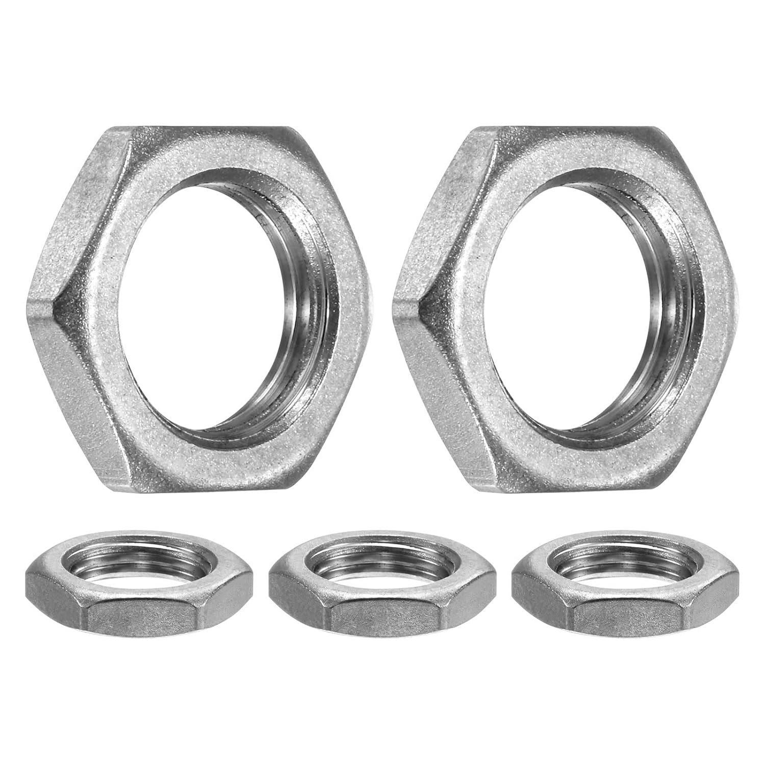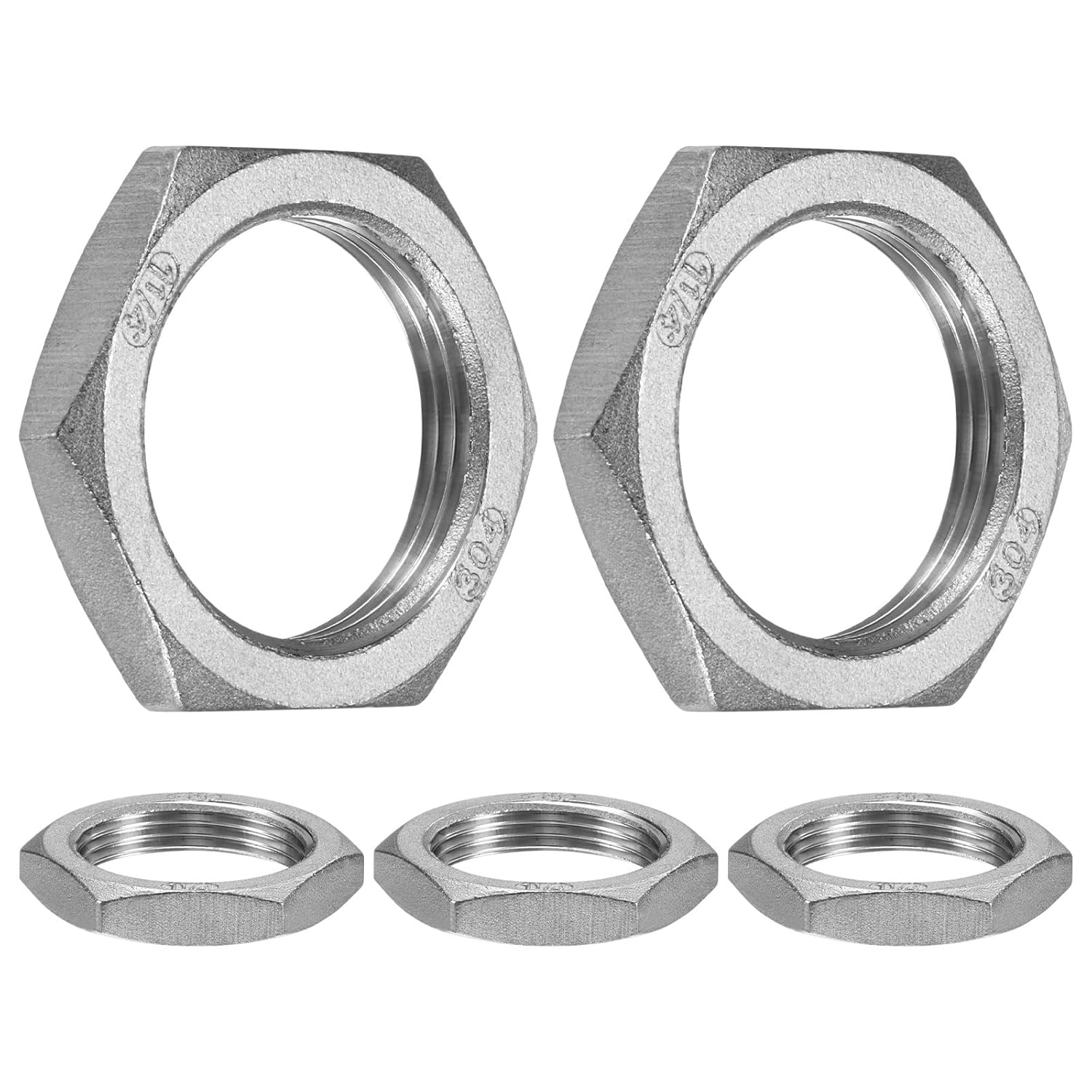 PRODUCT APPLICATIONCast pipe fitting hex locknut are suitable for places where pipes are disassembled and connected, such as valves, filters, pneumatic systems, irrigation and industrial equipment, to ensure the safety and reliability of the pipeline system.PRODUCT DETAILS√ Type: Cast Pipe Fitting Hex Locknut√ Material: Stainless Steel√ Color: Silver√ Size: G1/4√ Width Across Flats: 0.87 inches/22mm√ Thickness: 0.28 inches/7mm√ Package Includes: 10 pcs lock nutsPRODUCT ADVANTAGES1. Locknuts are made of stainless steel, with excellent corrosion resistance and long-lasting durability, certain strength and hardness, and are not easy to deform or break.2. The lock nut thread is precise and error-free, without thread crossover. The hexagonal design makes it easier for you to install and remove with a wrench. Used with sealing washers or raw tape, it provides a safer and more reliable seal.ATTENTIONDo not over-tighten, which may cause damage to the pipeline sealing workpiece. Do not use nuts on high-pressure pipelines anymore.