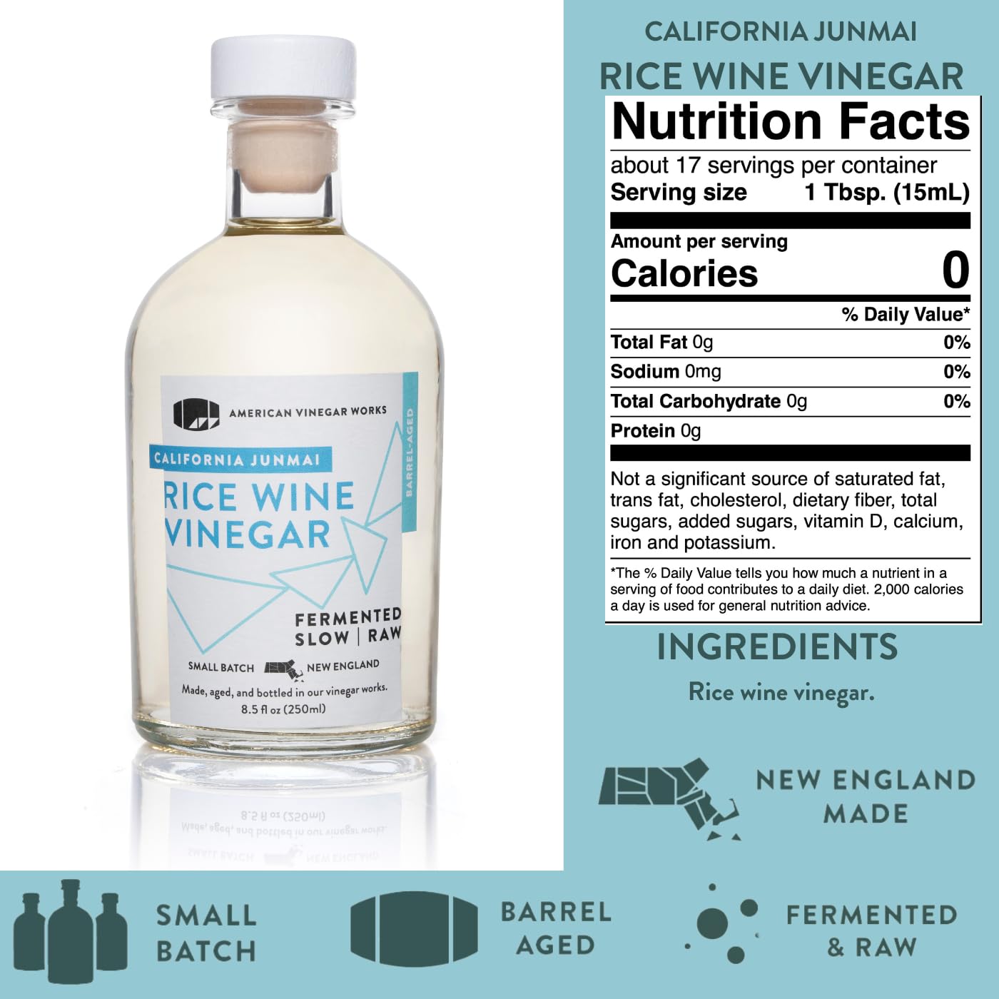 A set of our four essential kitchen vinegars. These are an upgrade to the vinegar classics that are often found on recipe cards. These four vinegars are set in one of our custom boxes and include a recipe card. Our vinegars are slow fermented using a process from the 1800s which we recreated in partnership with local universities. After fermentation we age our vinegars in oak barrels and hand bottle every bottle. Better Than Champagne Chardonnay Wine Vinegar is made with chardonnay from California this vinegar would be a blanc de blancs if it were a champagne. Luckily it is not, it is better. It is slow fermented in small batches using a unique process from the early 1800s and aged in 25-gallon American oak barrels.Ultimate Red Wine Vinegar is Made with California Shiraz (or Syrah) this vinegar is a bold standout that will quickly become your go-to red wine vinegar for your most versatile vinaigrettes. This vinegar was co-fermented in small batches using a unique process from the early 1800s and aged in 25 gallon American oak barrels. We call it our Ultimate Red Wine Vinegar for a reason. 19.53 Miles From The Tree Apple Cider Vinegar is Made with apple cider from northern Massachusetts this ACV is our tribute to Johnny Appleseed who was born exactly 19.53 miles from our vinegar works and is credited with spreading (cider!) apple trees. We think our former neighbor would really appreciate what we have done with his orchards and be smitten by this slightly sweet and highly tangy small-batch New England ACV. California Junmai Rice Wine Vinegar is Made with junmai-grade sake from California this rice wine vinegar is elegant and has more weight than commercial vinegars. It is slow fermented in small batches using a unique process from the early 1800s and aged in 25-gallon American oak barrels. A perfect partner for your micro greens, cucumbers, and any other dish where you would use an expressive rice wine vinegar.