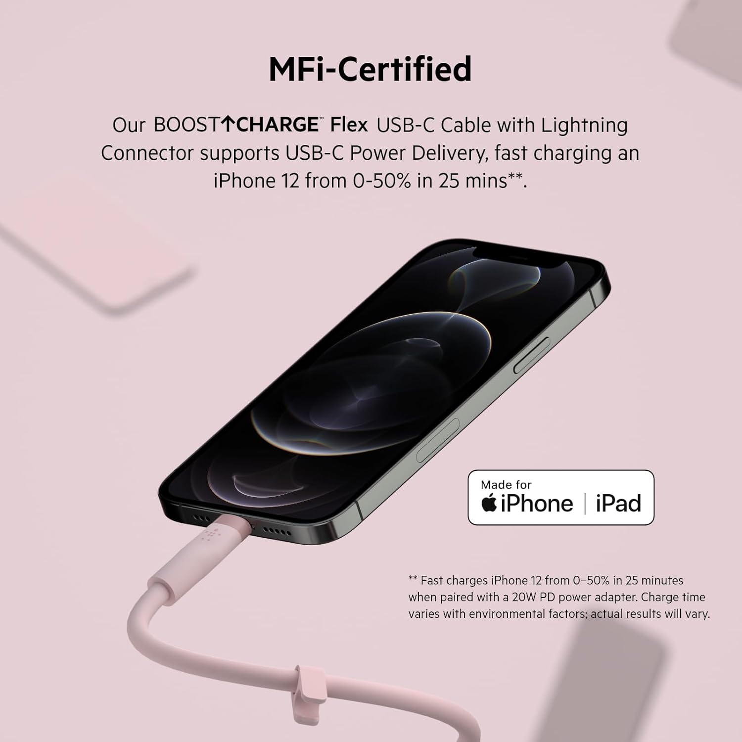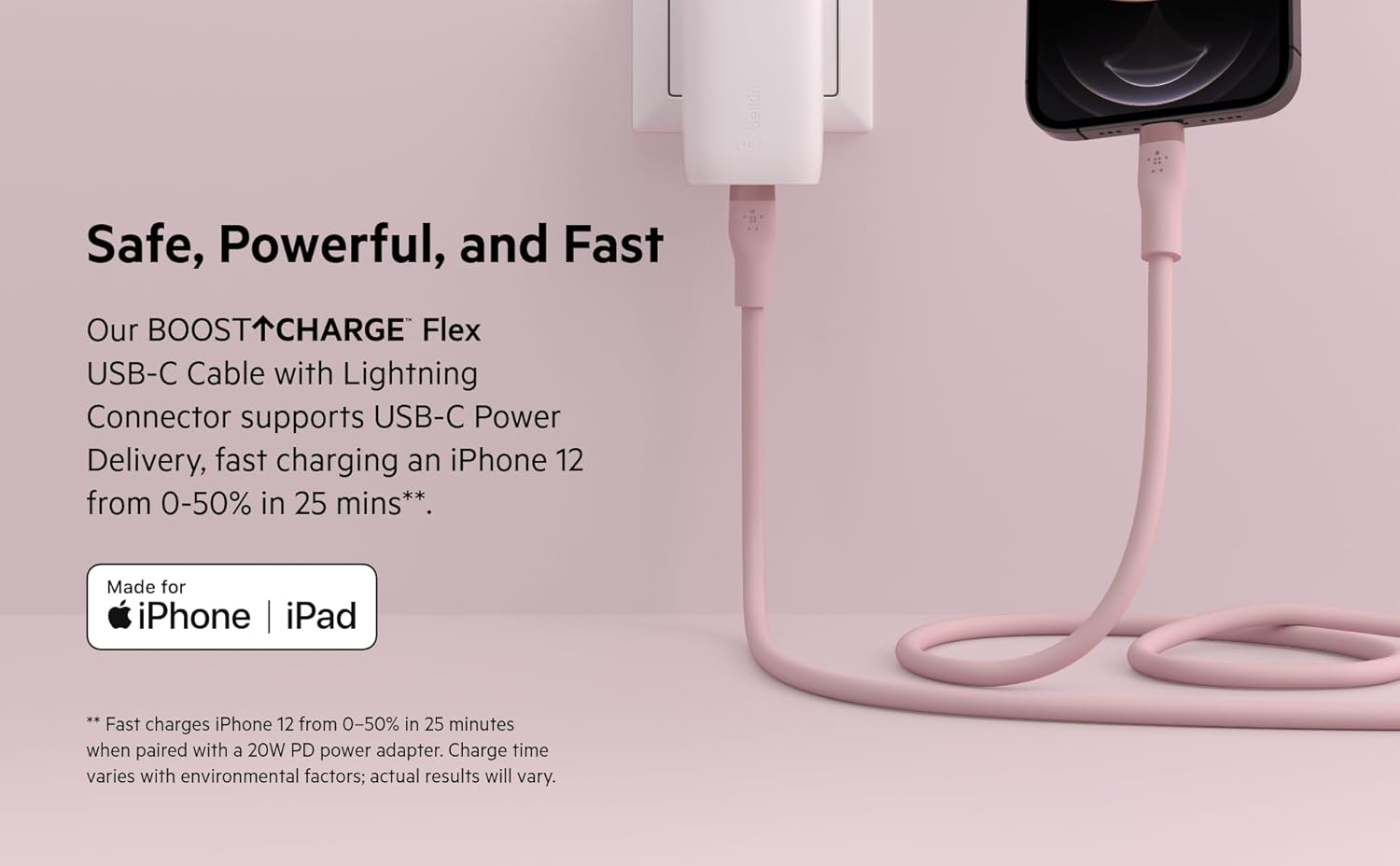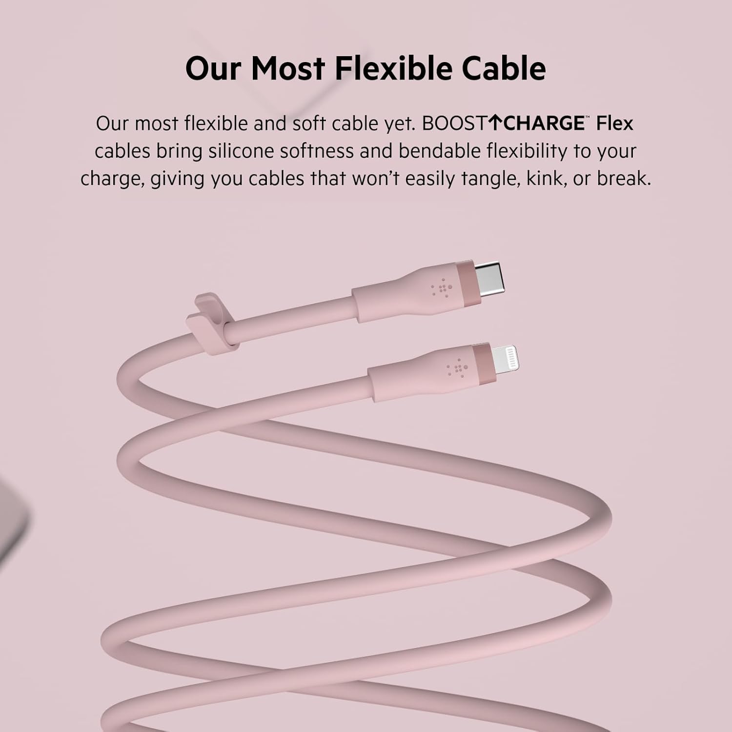 Experience the ultimate in flexibility and softness with an unmatched USB-C cable with lightning connector for improved durability and performance. BOOST↑CHARGE Flex silicone cable is an easy to use and long lasting charging cable with a tangle, kink, and fray.