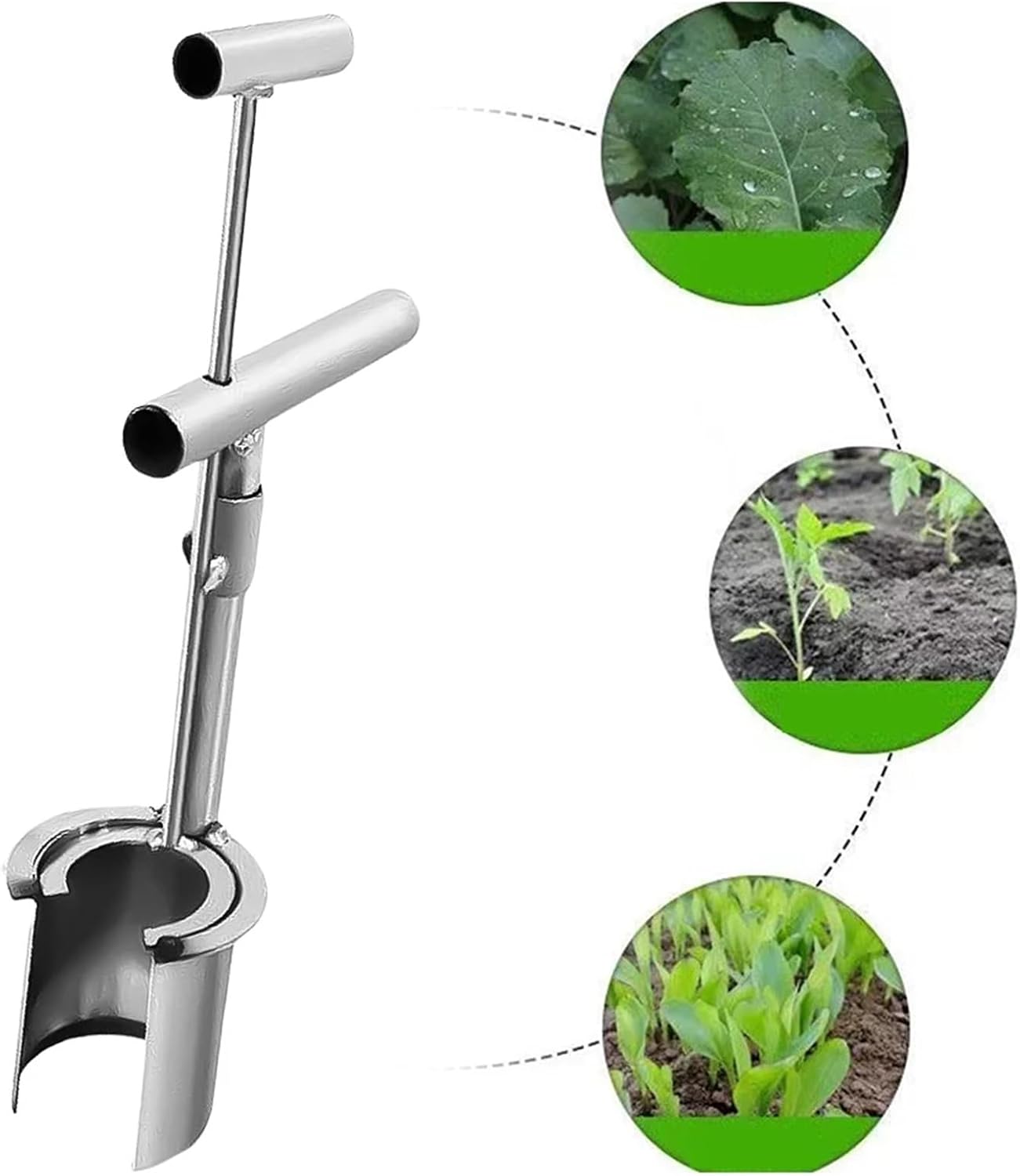 Specification:Material: MetalDimensions: Bucket height 11cm, bucket diameter 8cmColor: SilverProduct size: Approximately 420.00x160.00x75.00mmProduct size: 16.54x6.3x2.95inchNote:Due to the different monitor and light effect, the actual color of the item might be slightly different from the color showed on the pictures. Thank you!Please allow 1-2cm measuring deviation due to manual measurement.1 x Plant And Fruit Tree Seedling Transplanter
