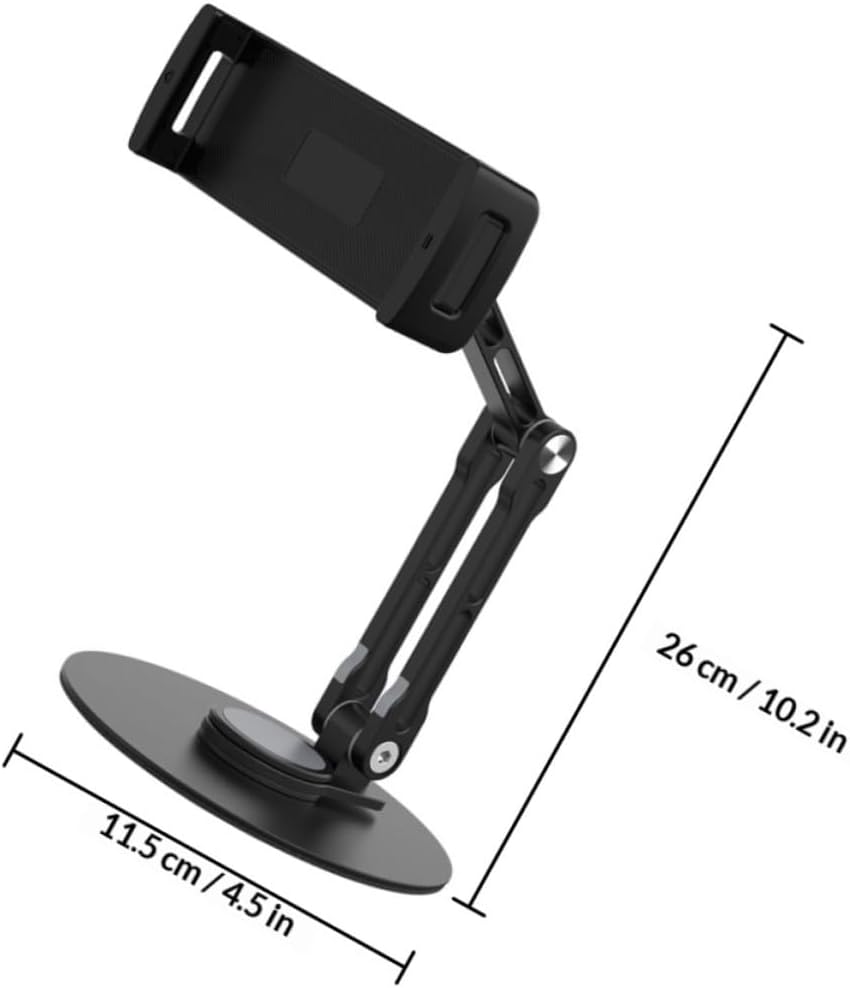 Package List 1 x Tablet Holder Characteristics -Material:ABS, aluminum alloy, silicone -Size:26.00X11.50X11.50cm/10.22X4.52X4.52in -Color:Black -Clamp adjustable range: 13.5-26.5cm/5.31-10.43in tablet bracket adjustable -Product Info:Aluminum alloy flat plate bracket - workmanship, reasonable structure, professional and practical, can bring you convenience desk tablet stand. - Put your tablet or another device at the perfect angle to enjoy a better using experience compact desktop tablet holder. - Lightweight and compact in size, easy to be placed stably on a flat and smooth . - The tablet stand is durable and practical enough to use. You can adjust the tablet holder angles for your different needs stand for tablet. - The tablet holder can be given as a good to your friends, which makes them feel happy all the time tablet holder for desk.Goods Informationfoldable phone stand for desk Made of ABS, aluminum alloy, silicone material, durable and practical for long-term use.adjustable tablet bracket Fashionable design, make it suitable for any home decoration style.stand for tablet Suitable for working at office, home, restaurant and more.tablet stand adjustable This stand provides a nice compact place for tablet