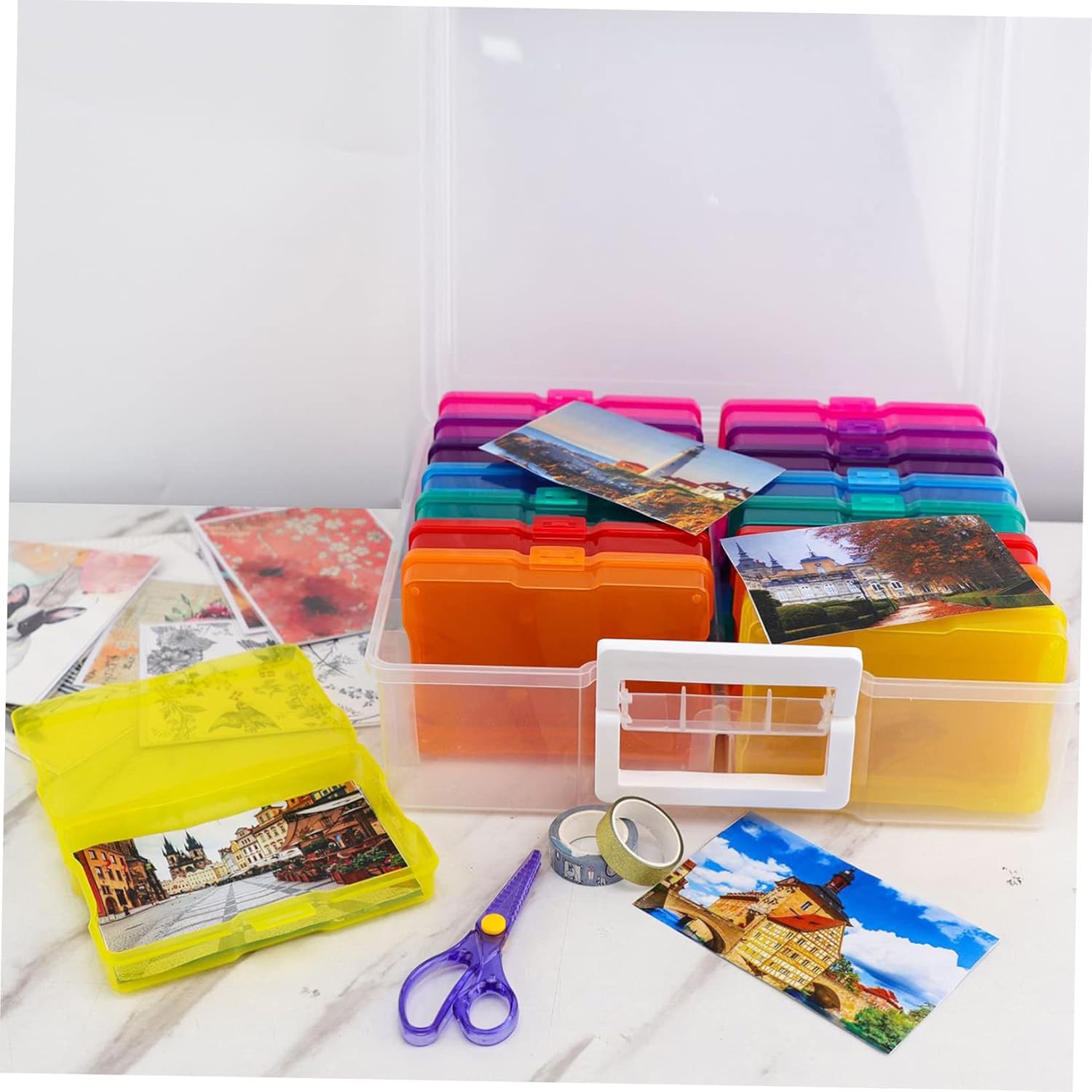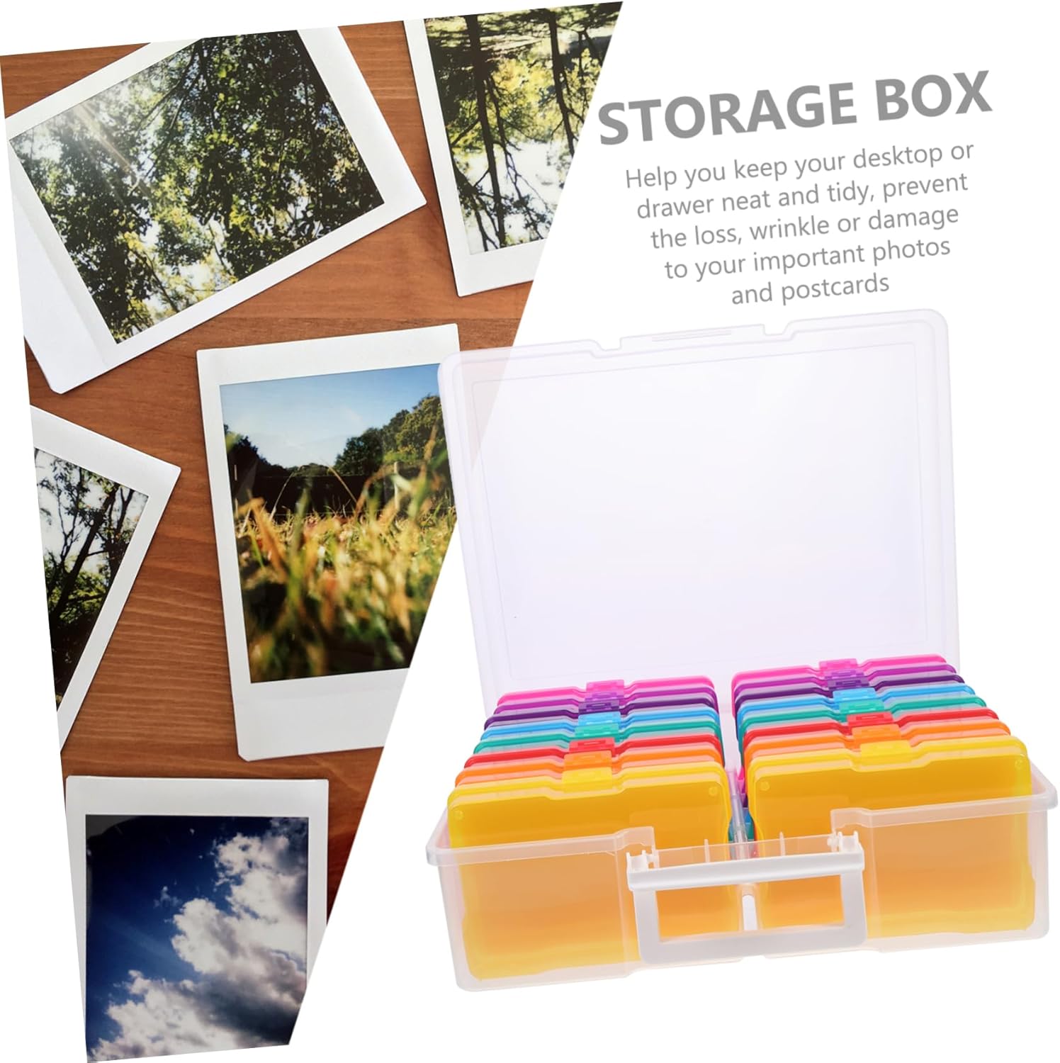 Package Include 1 x set of Photo Storage Boxes Features -Product Info:Photo storage box -Material: Plastic picture holder storage case - Size: 36.00X29.00X12.50cm/14.15X11.40X4.91in photo storage organizer - photo boxes storage - This photo storage case includes individual small boxes and a large box to keep and store photos, cards and other supplies organizer. - In different colors, these small photo cases can be used to classify your different photos card organizer. - It is perfect birthday gift, Christmas gift, or other festival , friends and family photo boxes. - These photo cases are all easy to open and close, very practical and convenient to use storage boxes for greeting cards. - They can make your desktop look more tidy and clean, multi-functional and not easy to break or deform. for photo storageGoods Descriptionphoto storage organizer It is practical and helpful, must be your perfect choice.organizer Are you still looking for photo card storage box? Then you can stop searching now, our product can meet your needs.storage boxes for greeting cards This storage box is made of , which is not easy to deform or break, can be used for a long time
