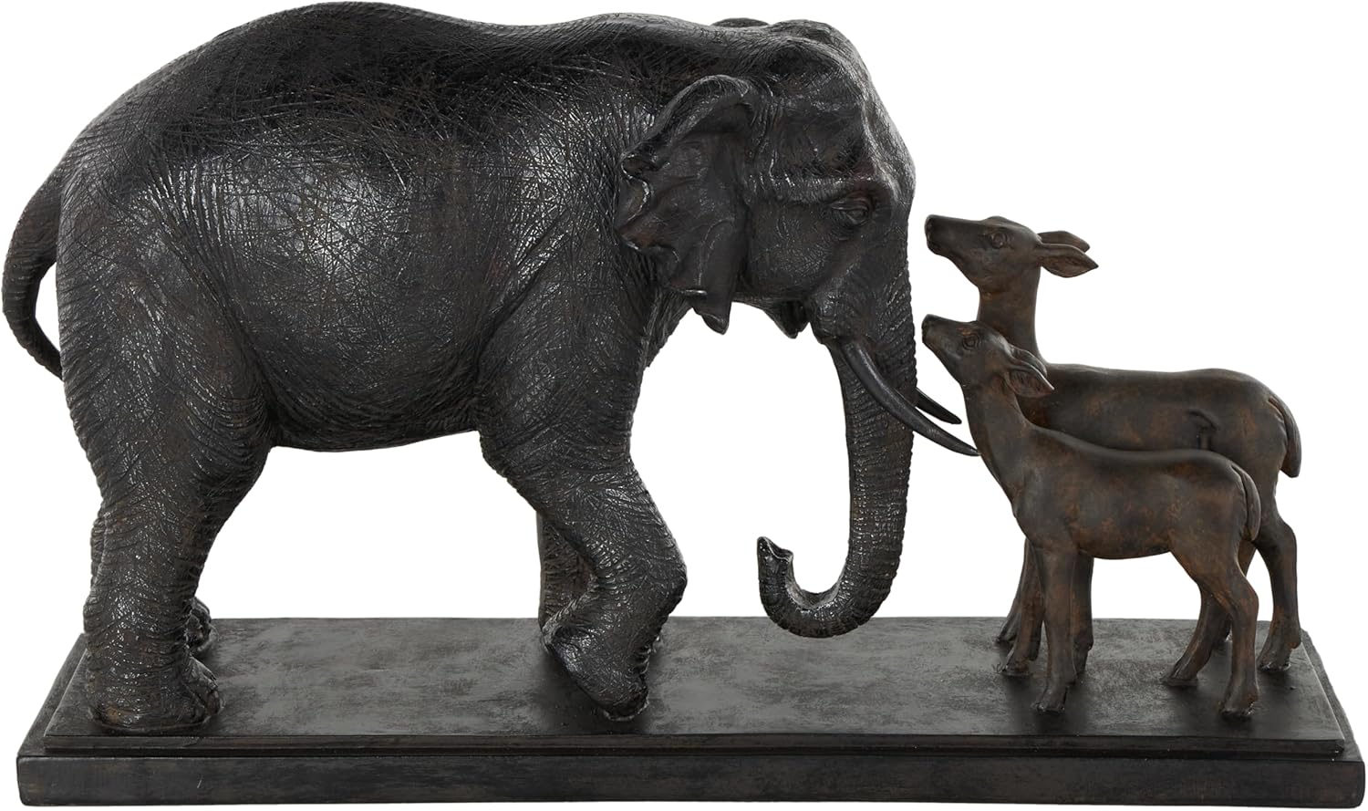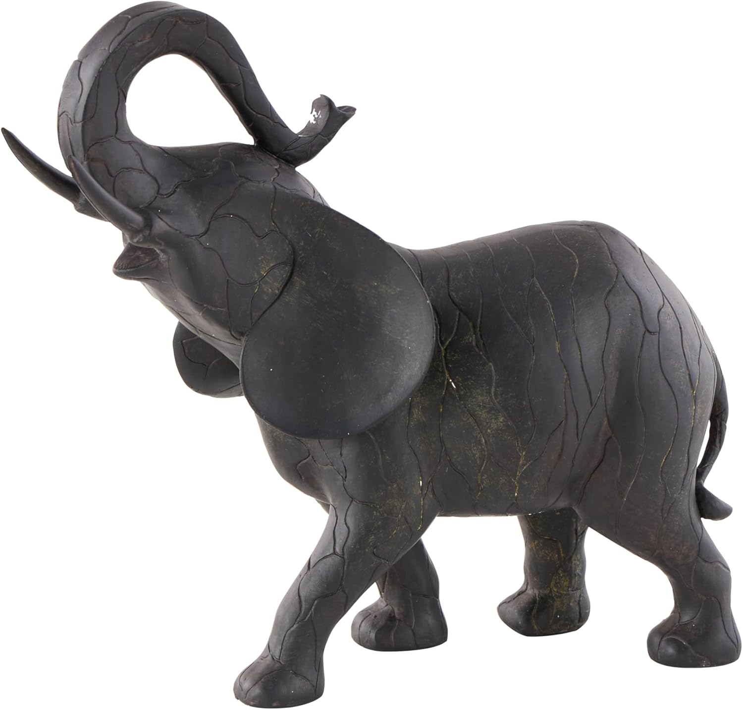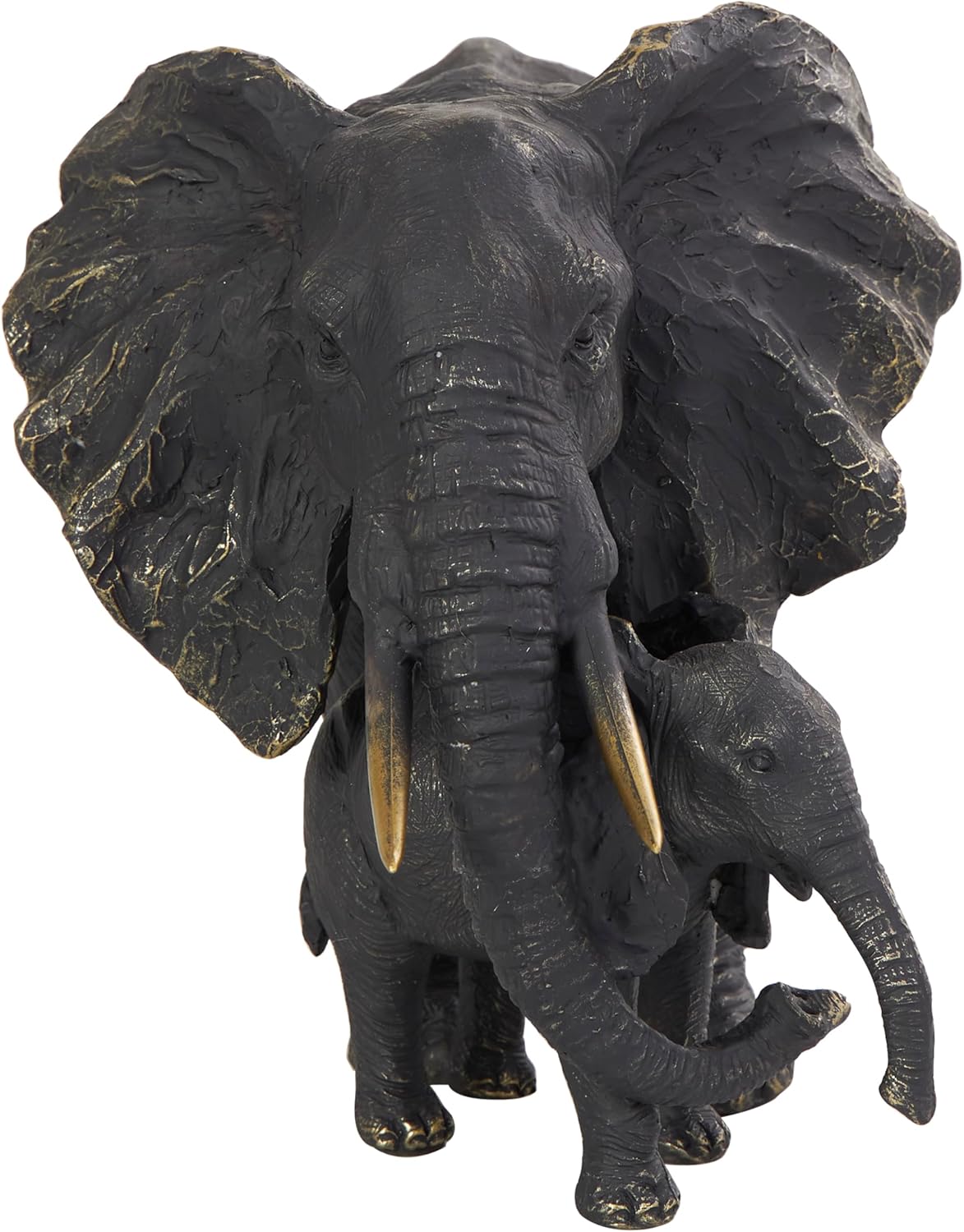 This eclectic accent statue is crafted from molded and carved resin and stone powder materials and finished with a satin bronze color and perfect gold detailing. This satin bronze home decor figurine captures the essence of an elephant's form while offering unique and captivating visual details. Wipe clean with a dry cloth. Display this elephant home decor statue on a table, shelf, or desk to infuse your space with a hint of global-inspired artistry. This item ships in 1 carton. Please note that this item is for decorative use only. Polystone sculpture makes a great gift for any occasion. Suitable for indoor use only. This item ships fully assembled in one piece. This is a single bronze colored statue. Eclectic style.