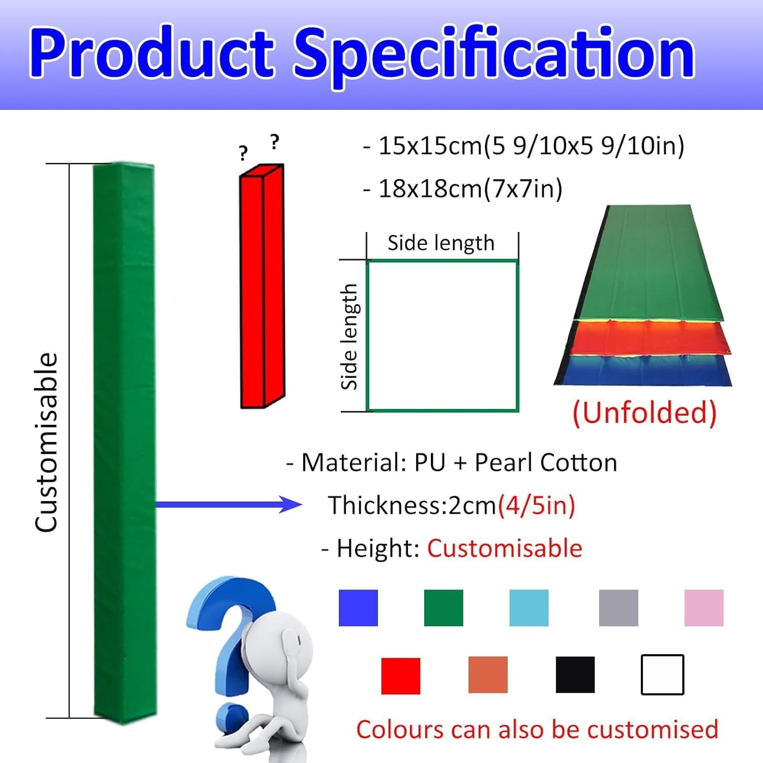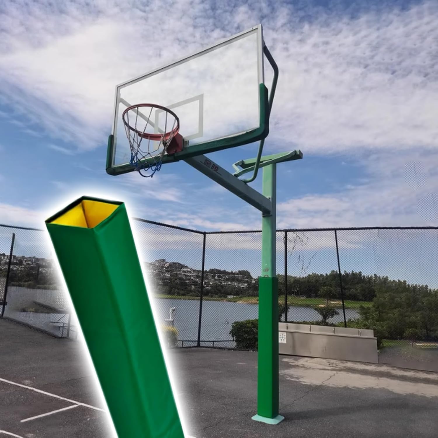 - Specifications: 1. Material: PU Cloth + Pearl Cotton2. Colour (Customisable): Green Blue Gray Black Red Yellow3. Height (Customisable): 1.8 m/ 5.9 ft4. Side Length:15 x 15 cm(5 9/10 x 5 9/10 in) 18 x 18 cm(7 x 7 in)5. Installation: Nylon Fastener- Features:1. Flexible material provides protection and safety for intense and rough play2. Whether it's a school/ club, your basketball hoop is protected from all angles3. It significantly reduces wear and tear/deformation damage and extends the life of the pole4. It is highly effective in cushioning the powerful impact of basketballs and players when they collide5. Ideal for basketball hoops, garage posts, basement utility poles, and other areas where column padding is needed- Package include:Basketball Hoop Pad x 1- Note:1. Minor errors can be 1cm error due to different batches and manual measurements. Thank you for your understanding2. There may be chromatic aberration due to the difference between the recording lamp and the display, Please refer to the actual product