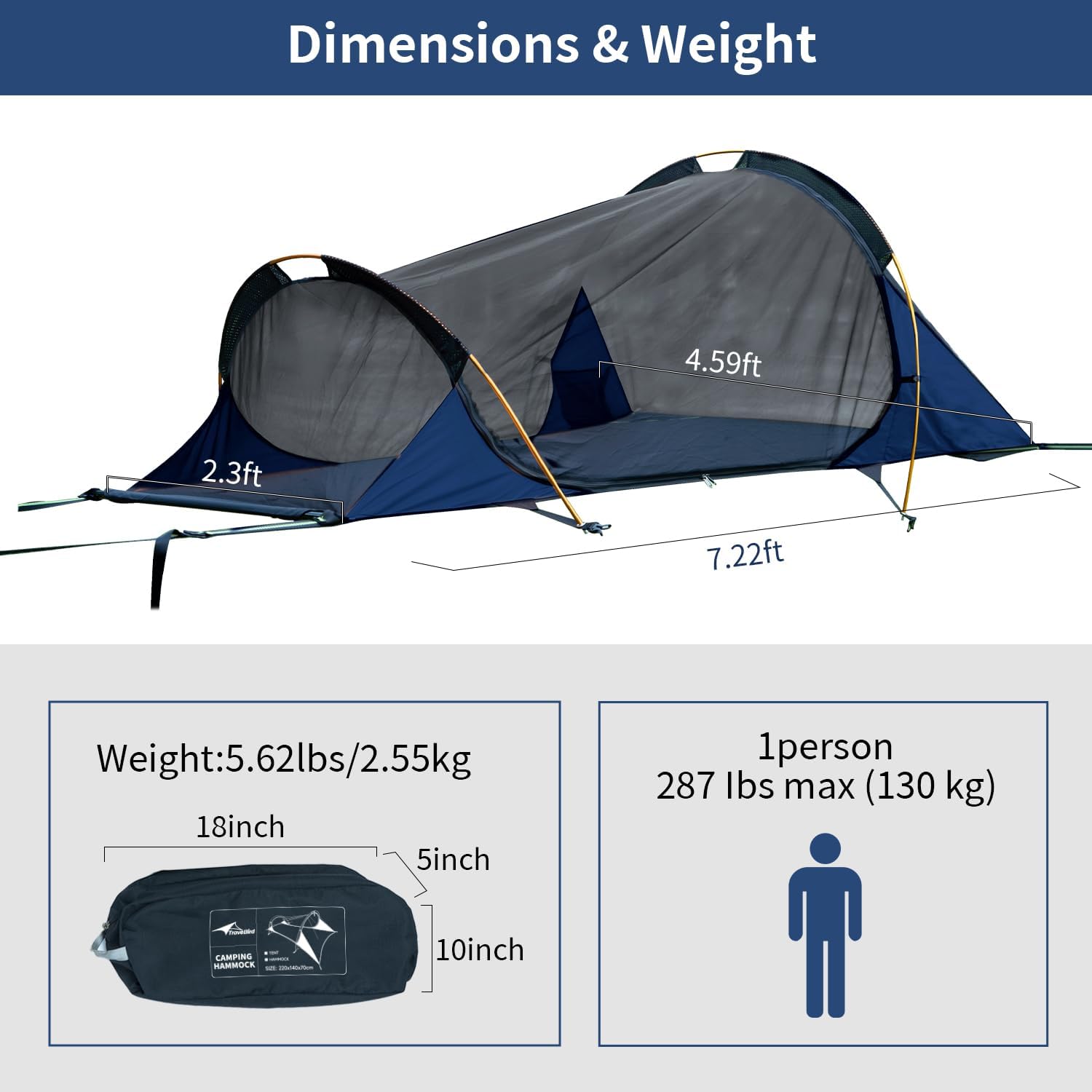 Travel Bird Flat Lay Hammock Tent with Net and Waterproof Rainfly for 1 Person