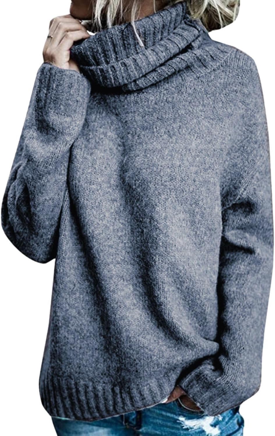 HOTYD Turtleneck Sweater Women Long Sleeve Loose Fit Casual Pullover Sweaters Trendy Cozy Knit Winter Fall Sweaters for Women