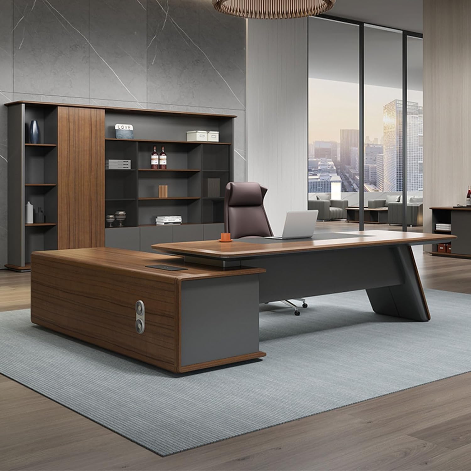 Specifications:Shape: L-shapedType: L-shaped deskMaterial: Wood, MetalDimensions: 102"L x 71" W x 29.5"H;Drawer: YesPower socket: YesSide cabinet direction: Left, RightApplicable places: Home, OfficeSide cabinet direction: L: Left; R: RightPackage includes:Desk x 1Installation accessories x 1