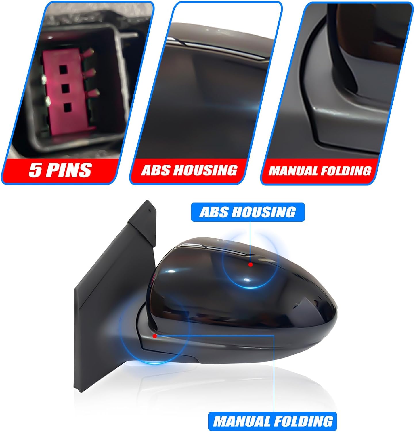 5Pins Driver Side Mirror Assembly Compatible with 2011-2016 Chevrolet Chevy Cruze with Heated, No Signal Light, No memory, No Puddle Light, No Auto-DimmingFitment: 5Pins Driver Side Mirror Assembly Compatible with 2011-2016 Chevrolet Chevy Cruze. Replaces OE Number: 19258659Easy to Install: Plug and Play. Directly replace the original parts without any modification Features: Sturdy casing, excellent impact resistance and hardness, long service life, designed for installation and functionality of original equipmentPackage Include: 1 pc of Right Side Mirror without Signal Lights. Please note that this passenger side mirror with Heated, No Signal Light, No memory, No Puddle Light, No Auto-Dimming