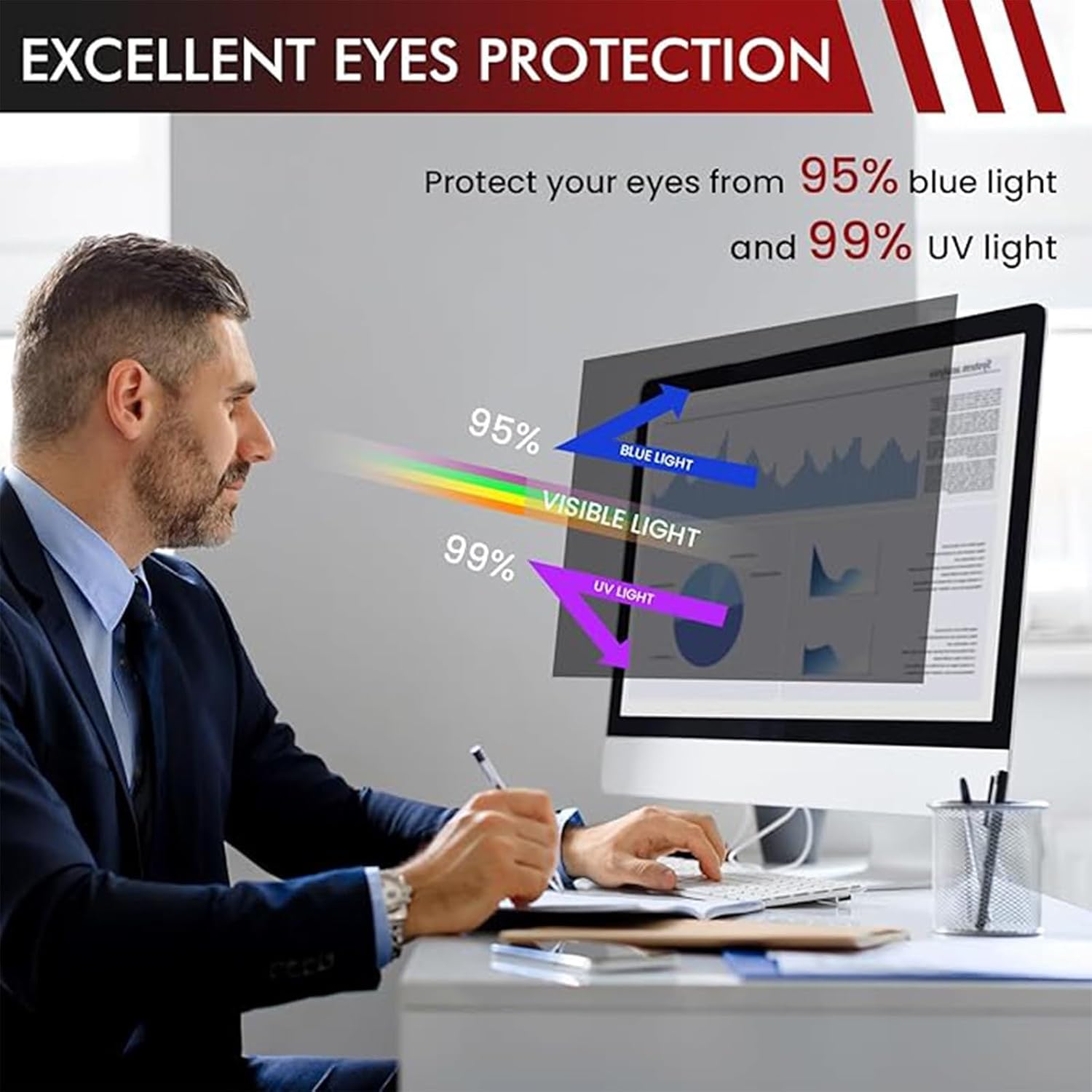brand:LINGDSWULING24" Computer Monitor Privacy Screen 16:9 Aspect Ratio, Eye Protection Anti-Blue Light Glare Shield, Removable Anti-Scratch 24" Protective FilmProduct name: Privacy filmMaterial: PET materialThickness: 0.6mmFeatures: Privacy screen, visible from the front, not visible from the sideAnti-scratch, dustproof and waterproof protectionPurpose: It can prevent the LCD screen from being scratched, easy to install and disassemble, and does not affect the shutdown function.Two mounting methods: Method One: Secures securely to any computer screen using an adhesive privacy film, Method Two: Easily secures to monitor frame using slide-in mounting tabsDimensions: 11.6"/25.6x14.4cm, 12.1"/26.1x16.3cm, 12.5"/27.7x15.7cm, 13.3"/29.4x16.5cm, 14"/31x17.4cm, 15.6"/34.4x19.4cm, 17"/34x27.3 cm, 19.5"/43.3x34cm, 20"/44.1x24.8cm, 21.5"/47.5x26.7cm, 22"/47.4x29.6cm, 23.8"/52.7x29.7cm, 24"/53.1x29.8cmPackage contents: Screen privacy film Installation kit x2
