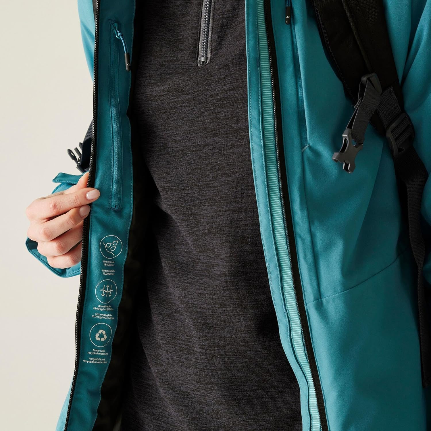 Waterproof and breathable Isotex 15000 stretch fabric 100% polyester - 165 g/m². - Breathability 15,000 g/m²/24 hours. - Durable water repellent finish. - Recycled Thermoguard filling. - Filling weight: 120 g/m². - Taped seams for full waterproof protection. - Quilted and padded lining panels. - Internal security pocket with zip. - Integrated technical hood with metal visor and adjusters. - Central front zip with drainage channel. - 2 zipped lower pockets and 1 zipped chest pocket. - Adjustable cuffs. - Windproof cuffs. - Adjustable hem with elastic cord. - Made with recycled content.