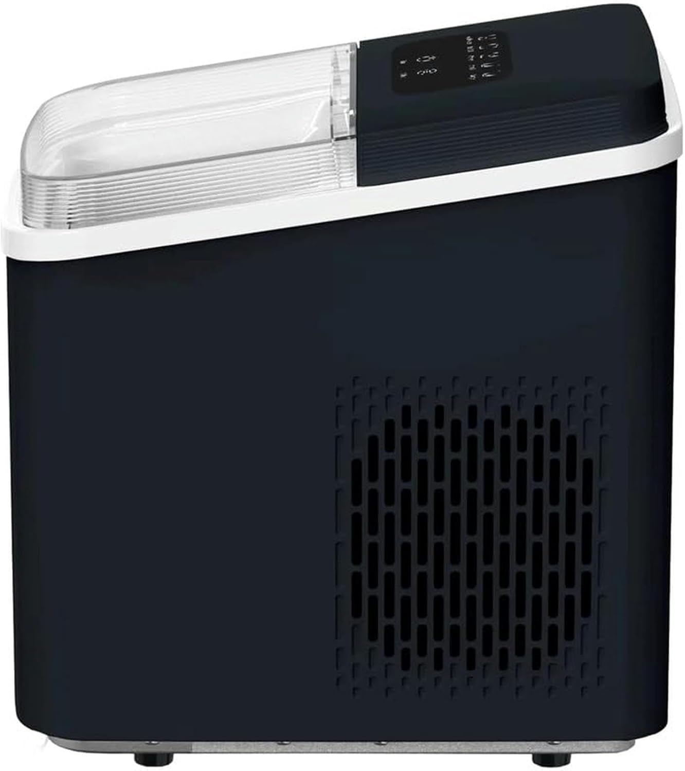 The Countertop Ice Maker makes longer lasting bullet shaped ice cubes in 2 different sizes. Automatic cleaning makes the The Countertop Ice Maker easy to use and maintain. Large viewing allows for easy monitoring of ice making. Energy saving system uses only 150-watts of power . making it easy to carry, not only for the party, and office but also for RV, camping, bar, etc. Products Dimensions - 8.98 in Long, 12.4 in Depth, 12.95 in Height Gross Weight 20.94lbs, Net Weight 18.08lbs Material: PP & ABS Power: 150W Capacity: 26lbs in 24 s Ice Shape: Bullet Ice QTY per Cycle: 9pcs Water Tank Capacity: 0.37 Gal Ice Basket Capacity 1.1lbs Control Panel: Button Noise Level: 40 db(A) Set Includes 1*Ice machine (no other presentation items included). Warm tips: 1. Due to manual measurement, please allow 2-3% error, before you bid, please make sure you don't mind. 2. The color may vary due to different displays, please refer to the actual product.Easy to use electronic controls will help you quickly make ice cubes.