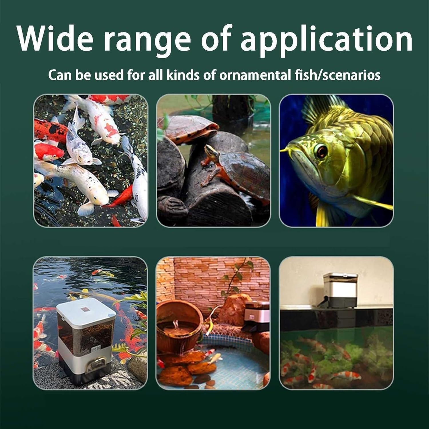 Specification:Product name: Solar powered automatic fish feederProduct capacity: 10lProduct material: PC+ABS materialSolar panel power size: 9V/4WBattery capacity: 2600mahPackage includes:Solar powered automatic fish feeder*1