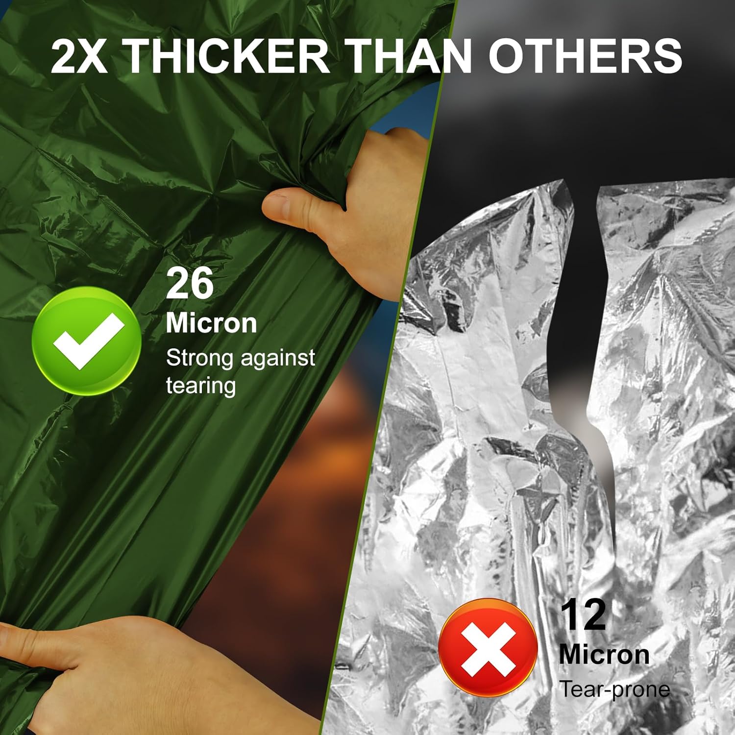 Ultra-Compact Emergency Sleeping Bag – Weighs only 4 oz, packs to 4.3x2.8 inches, yet unfolds to 85x35 inches for full adult coverage. Its waterproof PET aluminized lining retains over 90% of body heat, while the high-visibility orange color and reflective surface aid rescue. Ideal for hiking, camping, and emergencies .