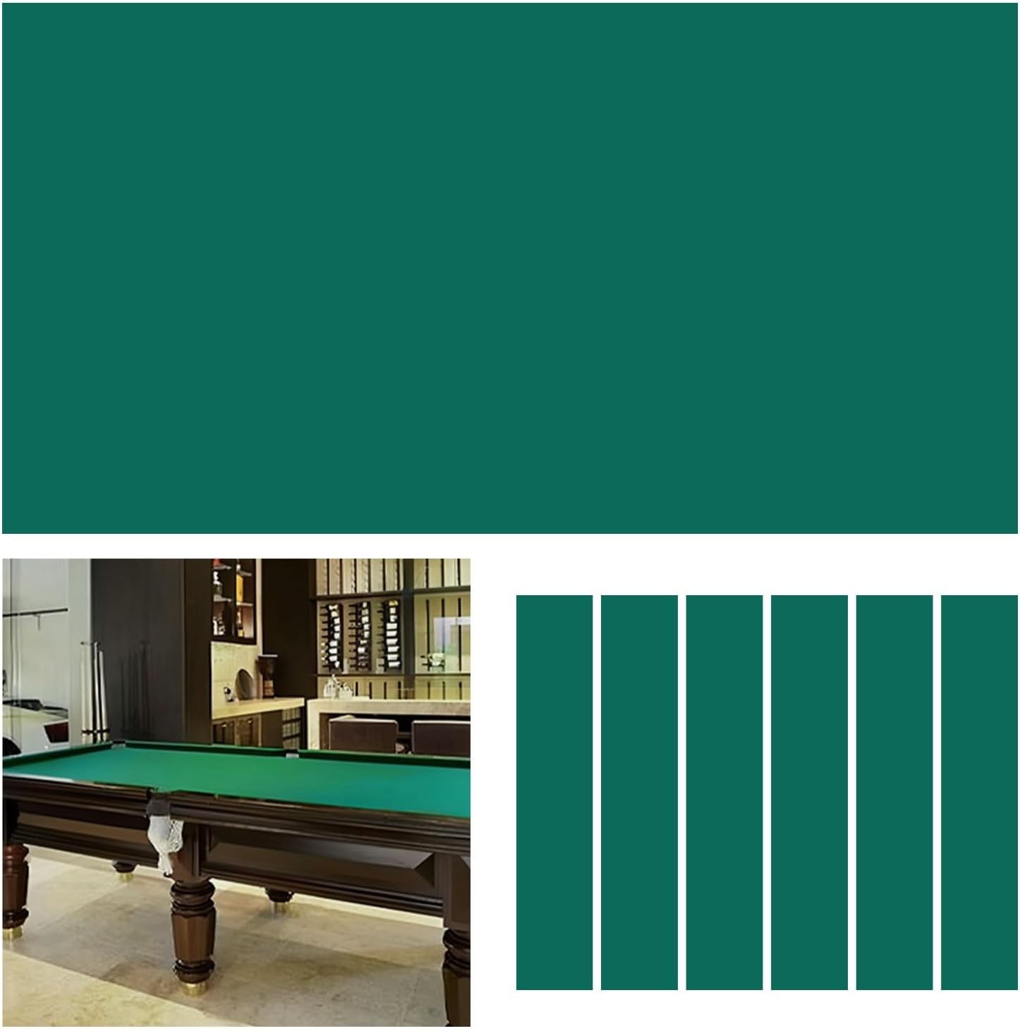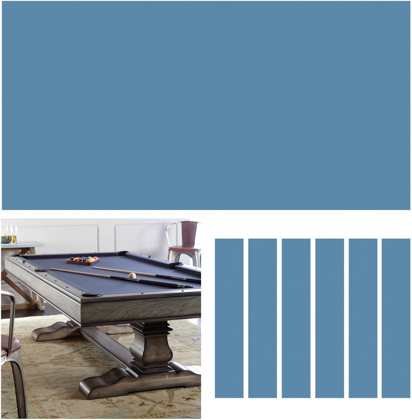 Premium Pool Table Felt for Professional-Grade PerformanceElevate your gaming experience with our Pool Table Felt, designed to deliver unmatched smoothness and made to last.Crafted from premium Billiard Cloth, this fabric ensures a consistent roll and precise ball control, making it good for both casual players and serious enthusiasts.Whether you’re recovering an old table or upgrading your home game room, our Pool Table Cloth offers a professional touch with its tightly woven, fade-resistant material that withstands intense gameplay and frequent use.This Billiard Table Cloth resists pilling, abrasion, maintaining its sleek appearance for years.Its lightweight yet sturdy design allows for easy assemble, and the Pool Felt’s anti-static properties keep dust and debris at bay. For home tables, bars, or clubs, our Billiard Felt combines style and functionality, ensuring your table looks as sharp as it plays.Transform your space into a pro-level arena choose made to last, precision, and elegance with our pool table covering.Specification:Material: Wool & NylonCloth Size: 2.8x1.5 m/9x5 ftEdge Cloth Size: 1.3x0.15 m/ 4x0.5 ftColor: Blue , Gray , Green , RedPackage Includes:1 x Billiard Table Cloth6 x Edge ClothKind reminder:1. Daily maintenance involves using a billiard ball brush to brush the billiard ball cloth and remove dust such as chalk powder.2. Every once in a while (depending on the length of time the billiard table has been used), usually a week or half a month, iron the table with a billiard iron to restore the fabric to a flat surface.