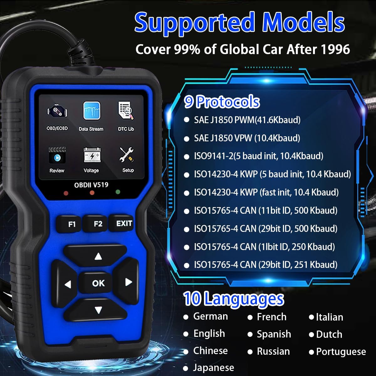 【Compatibility with 98% of Vehicle Models】Compatible with over 98% of sedans, trucks, and SUVs produced by American manufacturers since 1996, Japanese manufacturers since 2002, and European manufacturers since 2008. This OBD2 scan tool, also known as an automotive diagnostic tool for 1996+ vehicles and an engine trouble code reader, can quickly identify engine system trouble codes. You can easily troubleshoot the root cause of problems without the need for a professional technician, saving you high diagnostic fees at repair shops.